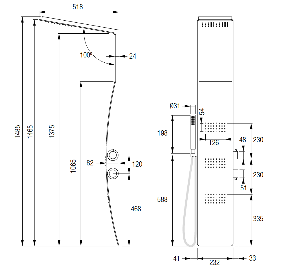 Rociador superior, anti-cal y efecto lluvia.