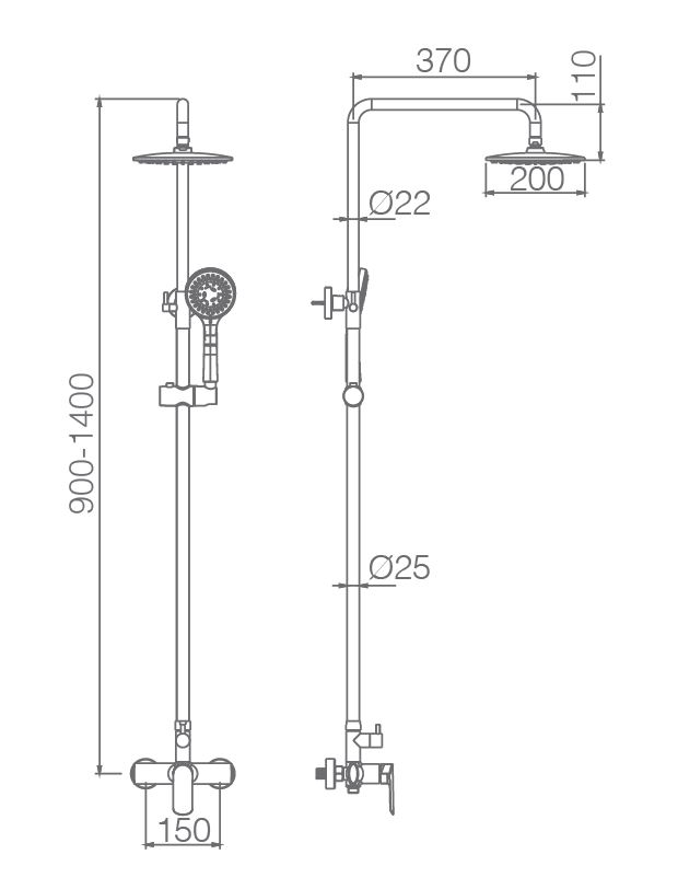 Barra de ducha de acero inox. S.304 extensible 95/132 cm.