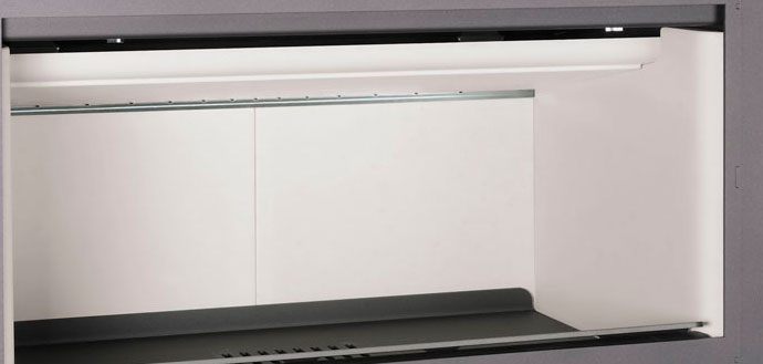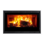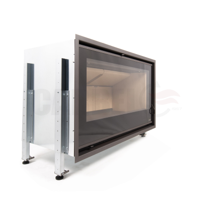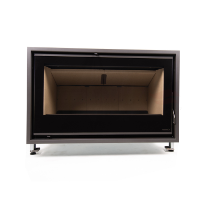 Insertable con grandes prestaciones y gran visión de fuego. Interior «thermic» en material resistente al calor, golpes por leña y gran duración.