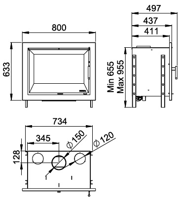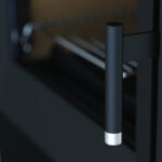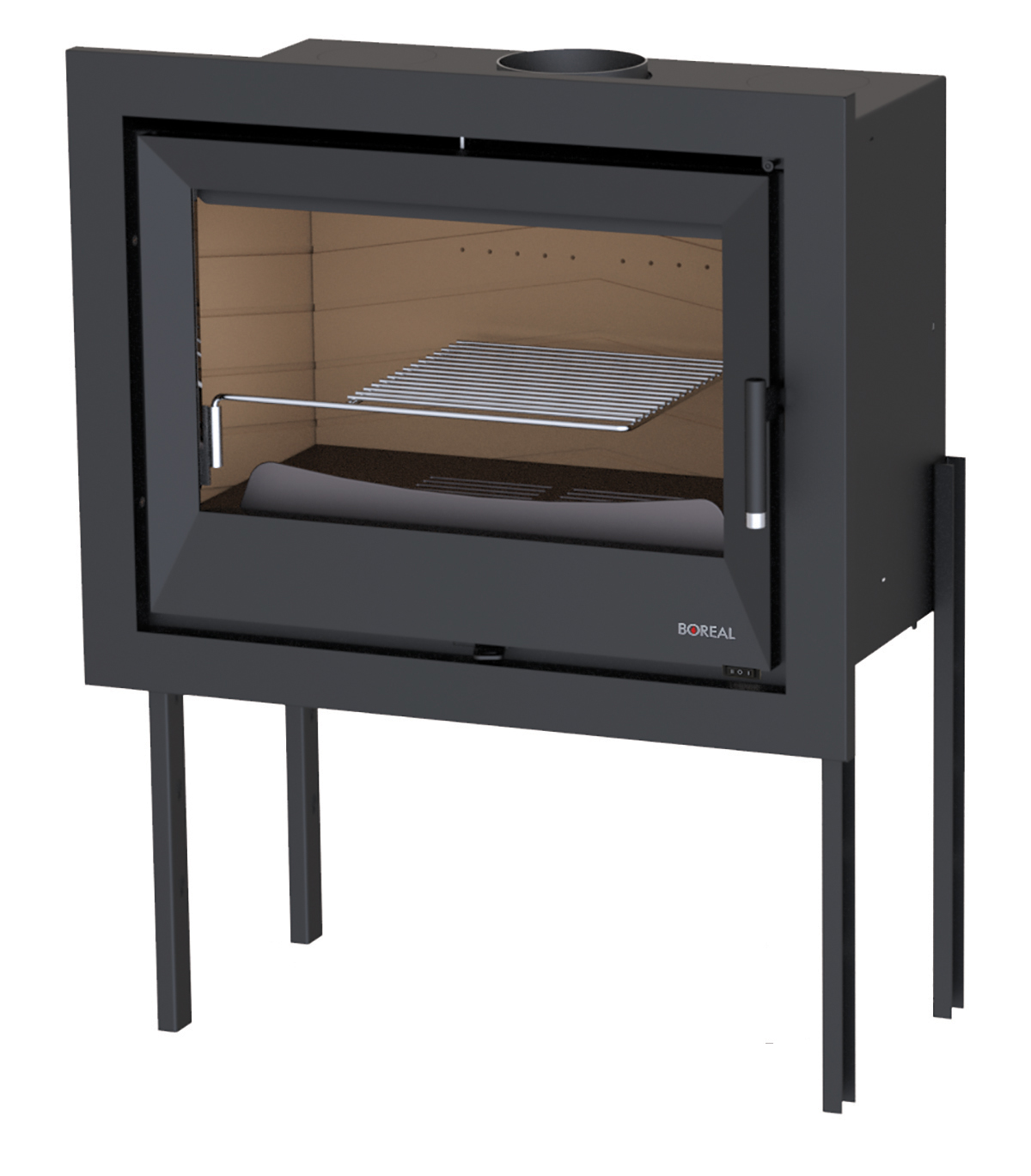 Elaborada en acero y acabado en pintura anticalórica. Puerta en fundición con cristal vitrocerámico. Parrilla extraible. Cajón cenicero. Cristal limpio y doble combustión.