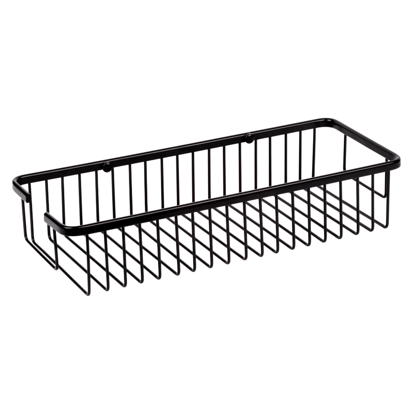 Jabonera rectangular para ducha de gran capacidad. Tipo de fijación: Tornillería. Acabado: Negro.