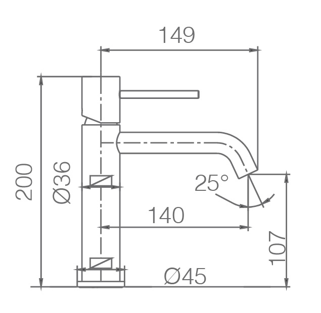 Cuerpo grifería en latón acabado Oro cepillado (PVD).