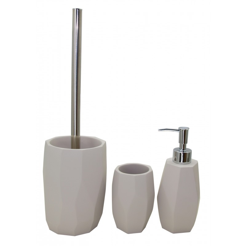 Pack de accesorios de sobremesa que consta de escobillero, vaso y dispensador de jabón.